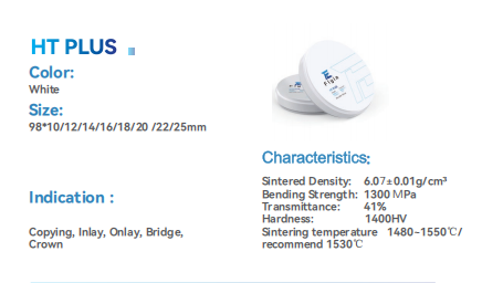 Color: White Aesthetic: high translucent Plus Sintered Density………………6.0g/cm